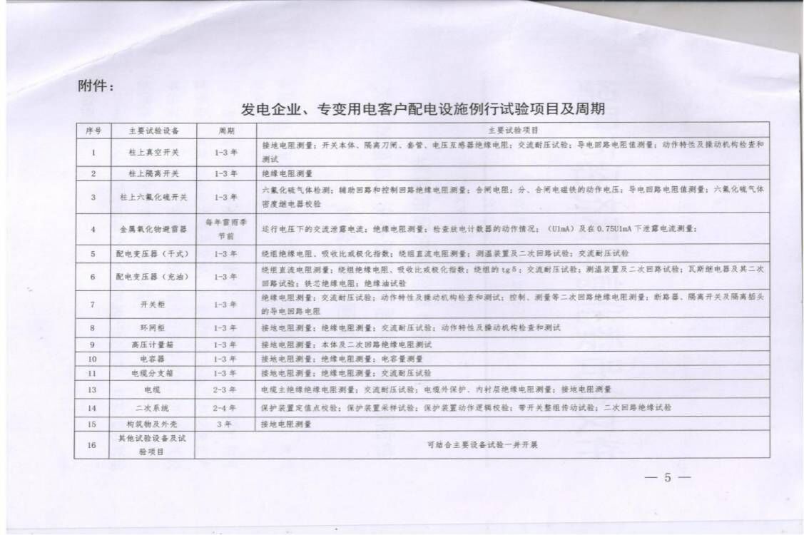 关于进行电力设备预防性实验的公示