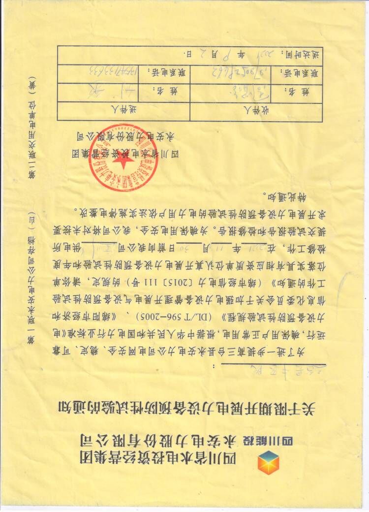 附绵阳经信委检测要求及永安电力公司通知。