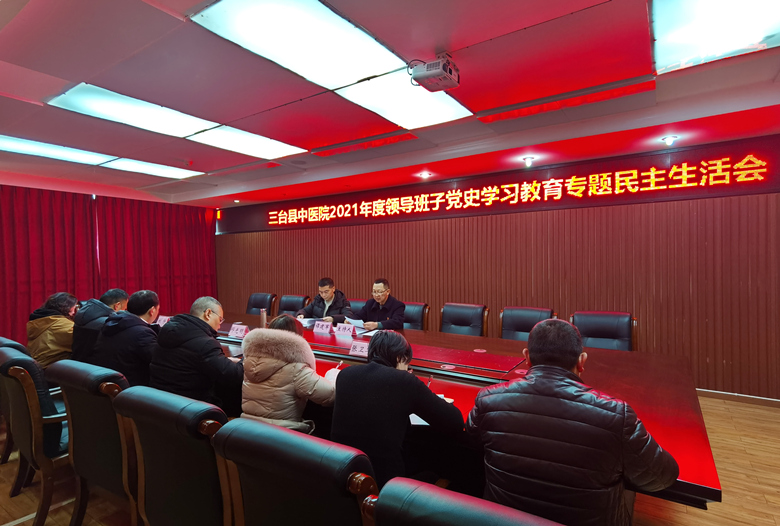1月28日,三台县中医院党委召开党史学习教育专题民主生活会,主题是大力弘扬伟大建党精神,坚持和发展党的百年奋斗历史经验,坚定历史自信,践行时代使命,厚植为民情怀,勇于担当作为,团结带领人民群众走好新时代的赶考之路,为全面建设社会主义现代化三台而努力奋斗。